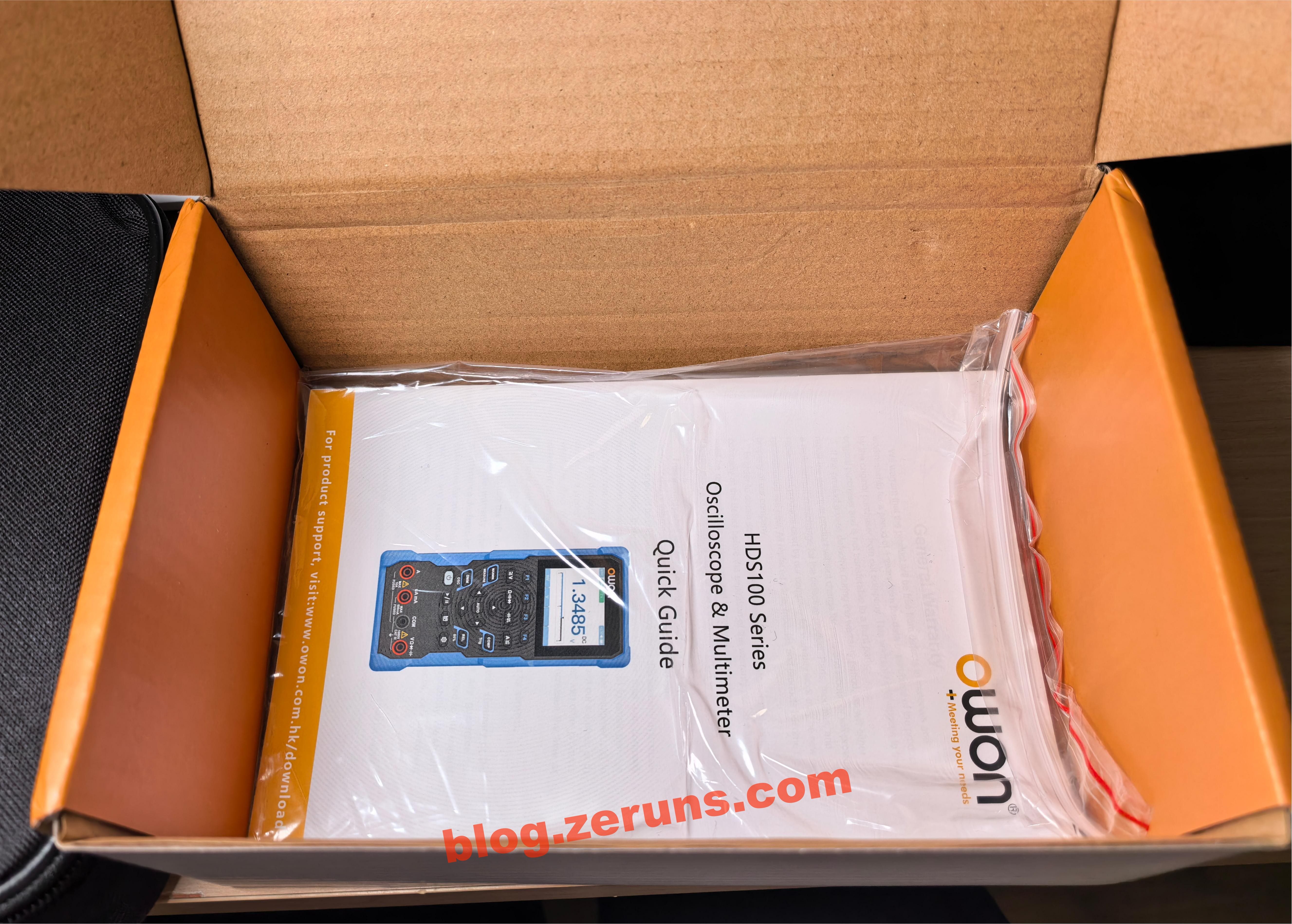 The front of the outer box is printed with “OWON Handheld Oscilloscope Multimeter”.