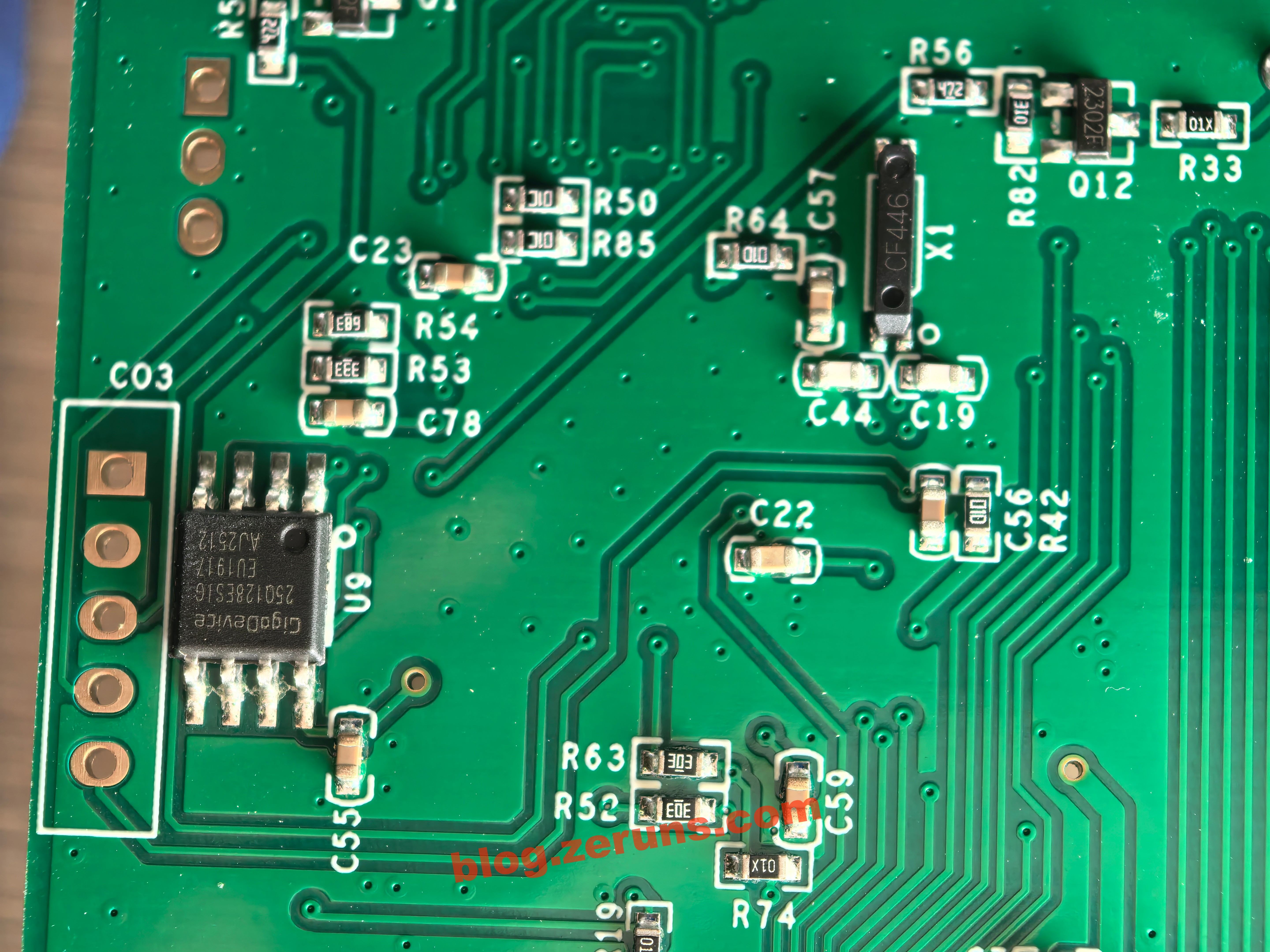 On the back side of the main MCU, there's a GD25Q128ESIG chip. This is a GigaDevice 128‑Mbit (16 MB) SPI Flash memory in an SOP‑8 package, supporting standard, dual, and quad SPI interfaces, with an operating voltage of 2.7–3.6 V. I suspect it's used to store graphical resources for the UI.