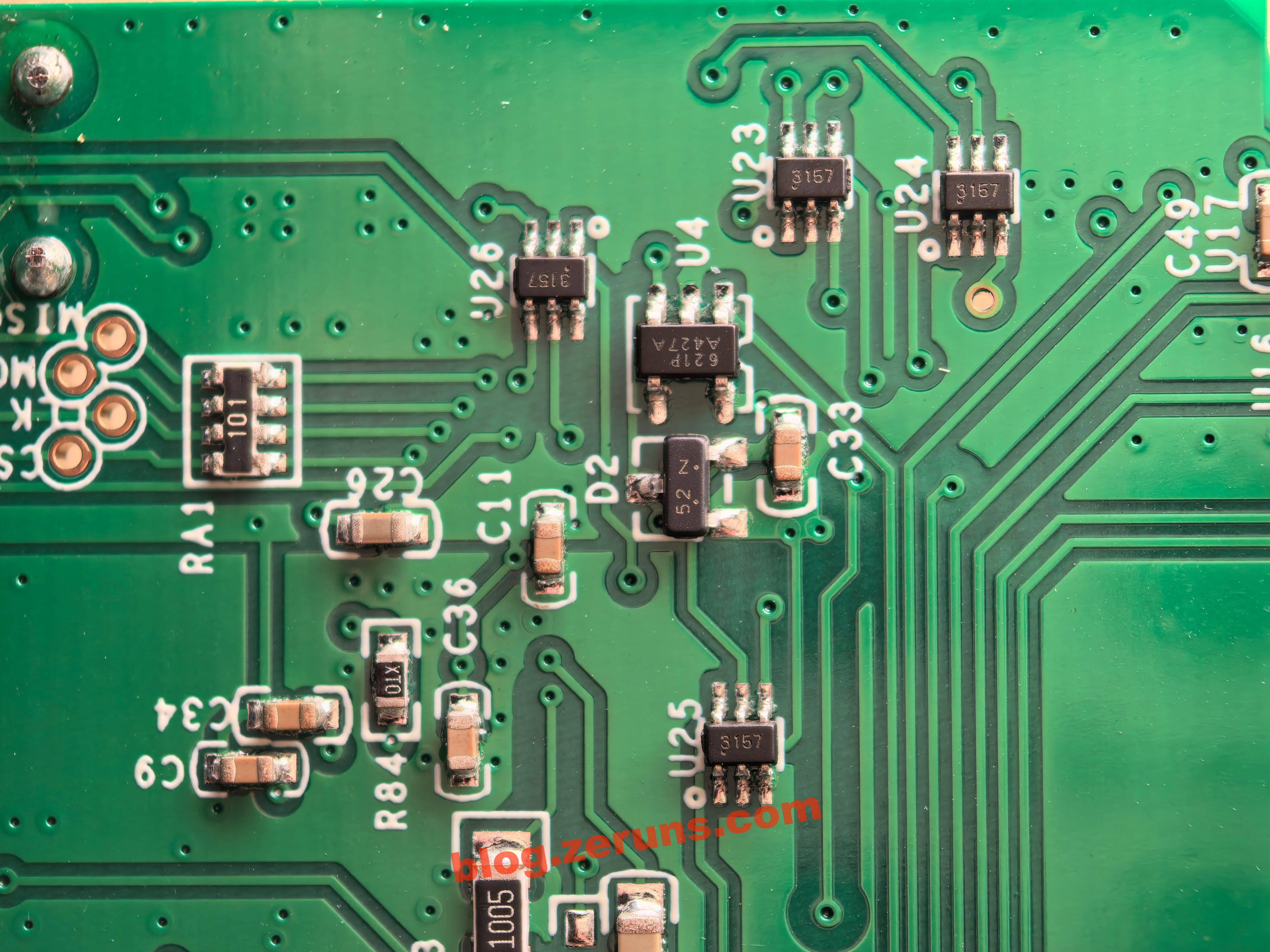 There are also some chips that appear to be used for signal conditioning or analog switching. Their markings include 3157, 621P‑A427A, and 52N.